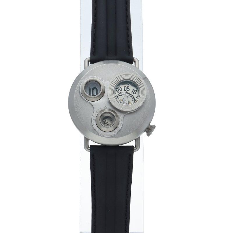 ケース上面のターレット状の3つの窓とジャンピングアワー機構による時間表示が特徴。MIYOTA製ムーブに自社製モジュールを搭載し、瞬時に切り替わるアワーとディスクによる分・秒をそれぞれの窓に表示。旧モデルから動作安定性と耐久性の向上の為に設計、素材、加工方法を改良。ケース素材をSUS303からSUS316Lへ、風防をミネラルガラスからサファイアガラスへ、アワー表示のレンズもアクリルから特注サファイアレンズへ変更。