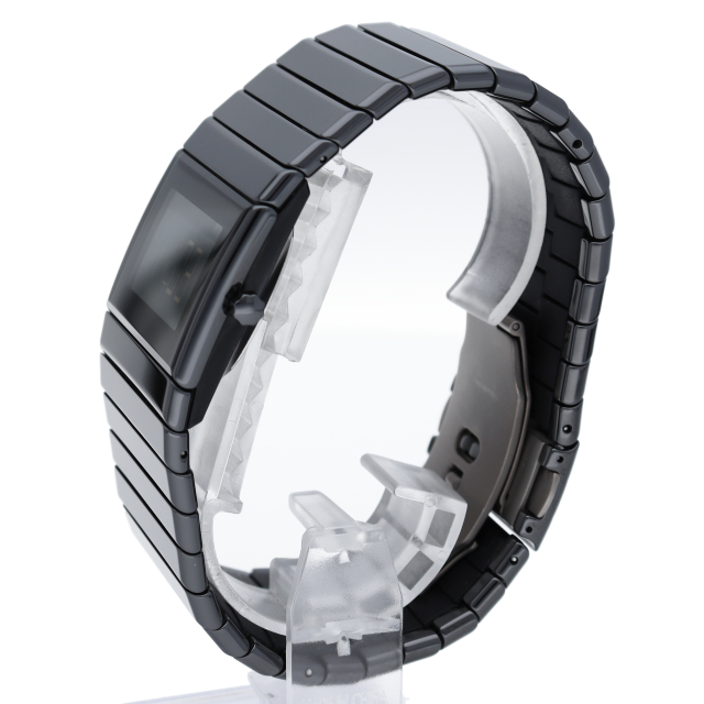 大胆でスリムなレクタングルケースに、ラドーの技術力が結集したハイテクセラミックスを使用したのがセラミカです。手首に装着しているのを忘れてしまうほどの薄型軽量な時計はラドーならではの哲学が演出されています。ムーブメントはオートクオーツを搭載し、ケースバックから見られるローターが回転することで蓄電される仕組みとなっております。R21925152(290.0925.3)