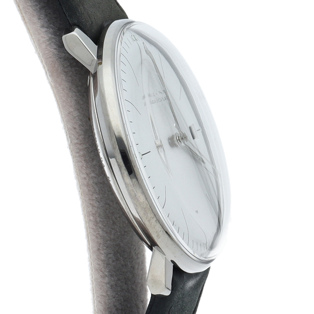 1861年創業のドイツブランド。こちらはバウハウス最後の巨匠と言われた彫刻家、故「マックス・ビル」氏が1962年にデザインした名品の復刻モデル。ドイツ・英国・米国・日本の電波を受信できる多周波電波式ソーラームーブメント J101.85搭載。