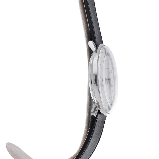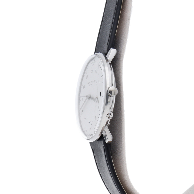 1861年創業のドイツブランド。こちらはバウハウス最後の巨匠と言われた彫刻家、故「マックス・ビル」氏が1962年にデザインした名品の復刻モデル。ドイツ・英国・米国・日本の電波を受信できる多周波電波式ムーブメント J101.65搭載。