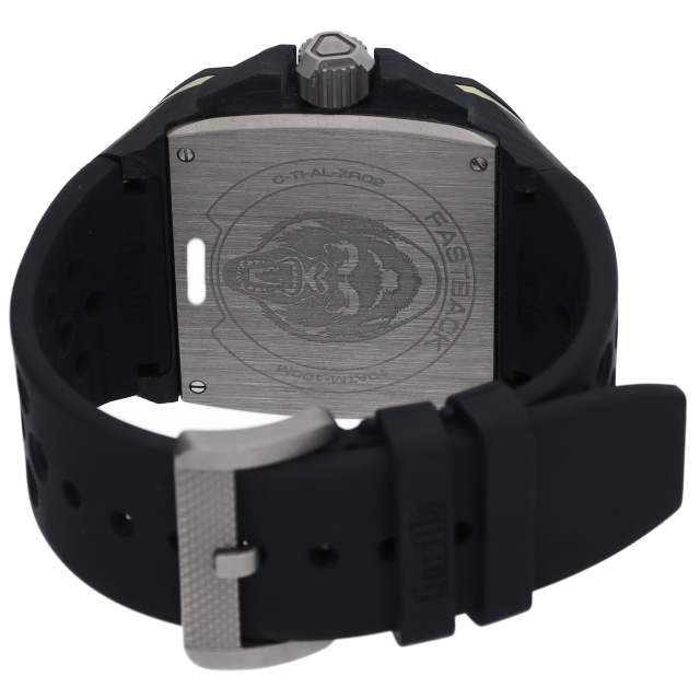 「ファストバック」は、ハイパフォーマンスで知られるアメリカンマッスルカーの象徴的な外形とカラーリングからインスパイアされており、意識的にハイテク素材を絶妙に取り入れながら個性を強調しています。耐スクラッチ性の半光沢仕上げセラミックは、「ファストバック」独特のベゼルデザインの一つでもあります。GORILLA。