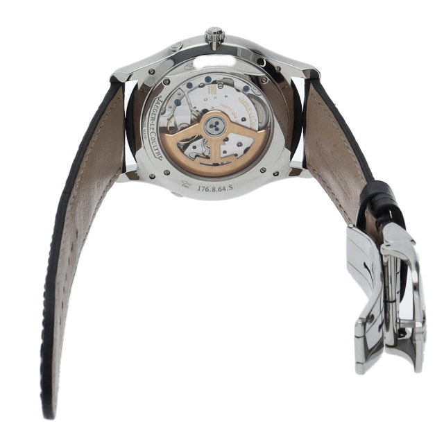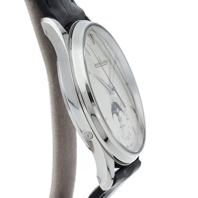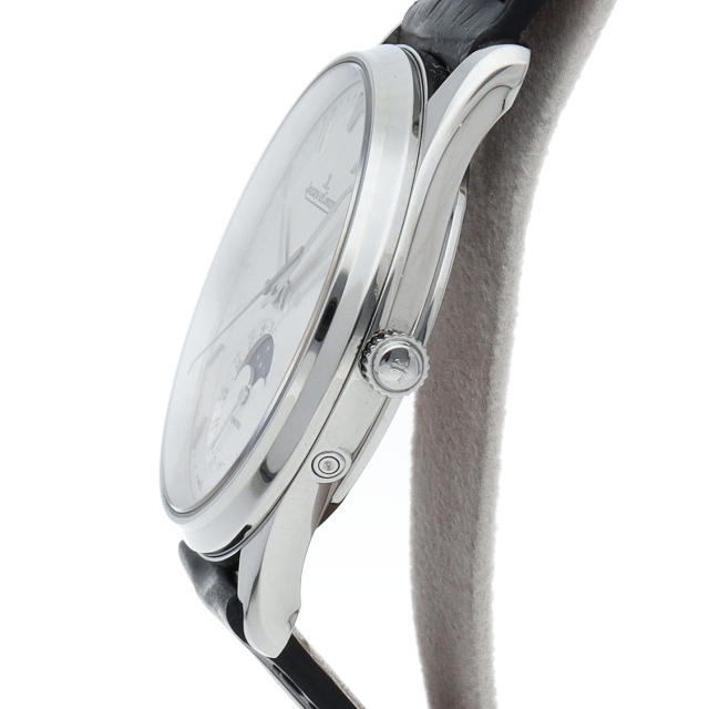 ジャガールクルトの技術と洗練の証「ウルトラスリム」。端正な表情、滑らかな素材感などシンプルな洗練さを追求したこだわりが表現されいてる超薄型ウォッチです。厚さ7.5mmの極薄ケース内に自動巻きムーブメントCal.898を搭載。Q1368420(176.8.64.S)
