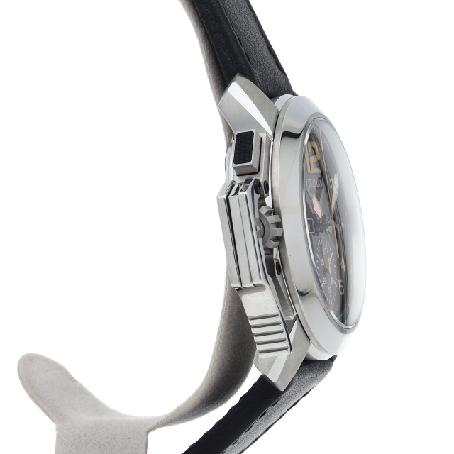 自動巻きクロノグラフと、ムーブメントに直接作用して精密にクロノグラフを操作する画期的な機能を組み合わせた時計史上初のモデルです。クロノグラフのスタートとストップ機能は、リューズに組み込まれ、どちらの操作もコントロールレバーだけで簡単に行えるようになっています。