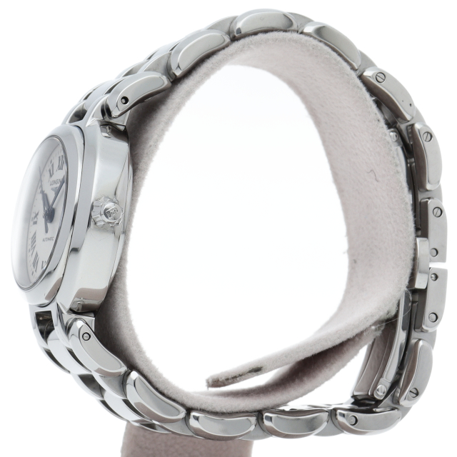 春夜に浮かぶ銀色の月、輝きが頂点に達し、やがて消えていく星。「ロンジン プリマルナ」は、過ぎゆく時間、生きている時間、そして丸みを帯びた繊細なラインで人々を魅了する月、これらすべての象徴であり、銀色の星に捧げるオマージュです。その柔らかなシルエットは、文字盤の精巧な輝きに引き立てられ、全体がダイヤモンドの煌めきで照らされています。