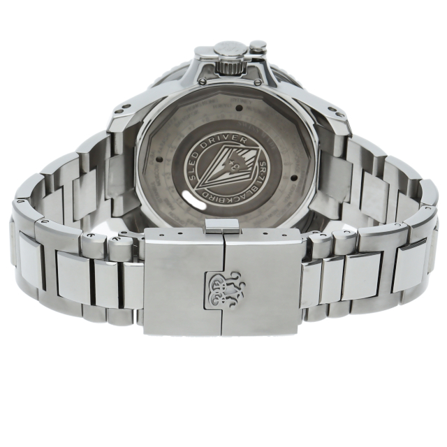 エンジニアハイドロカーボン 「エアロ GMT IIスレッドドライバー」は、「The Sled(そり)」とも呼ばれるSR-71、通称ブラックバードを操縦した伝説のパイロット、ブライアン・シュルとその強靭な忍耐力にオマージュを捧げるタイムピースです。SR-71ブラックバードが米国空軍の最終飛行で全米飛行家協会の4つのスピード記録、国際航空連盟の3つのスピード記録を打ち立てた1990年にちなみ、世界限定1,990本で発売されました。