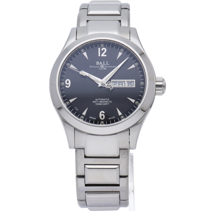 ボールウオッチの中でシンプルでありながら、耐磁性、耐衝撃性を備えたモデルです。丸型にしっかりとしたラグが取り付けられた樽型ケースに視認性の高い太い針と三角型のインデックス。