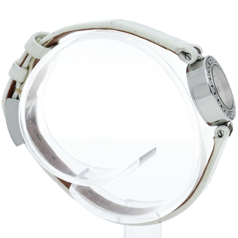 文字盤の6時位置にはワンポイントのダイヤモンドを配し、ベゼルにも24ポイントのダイヤモンドをセッティングすることで豪華な雰囲気を演出します。