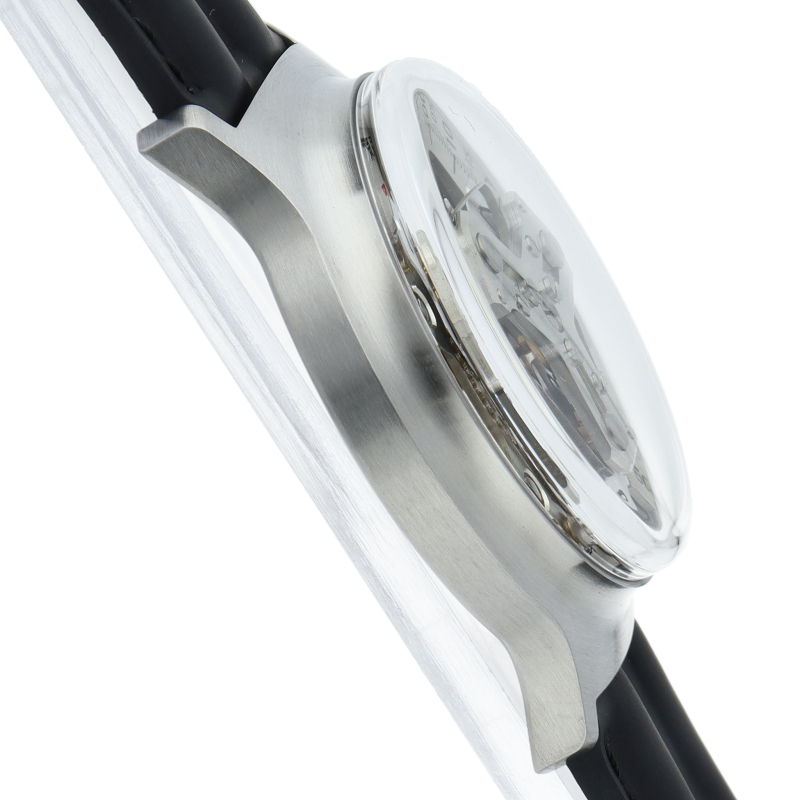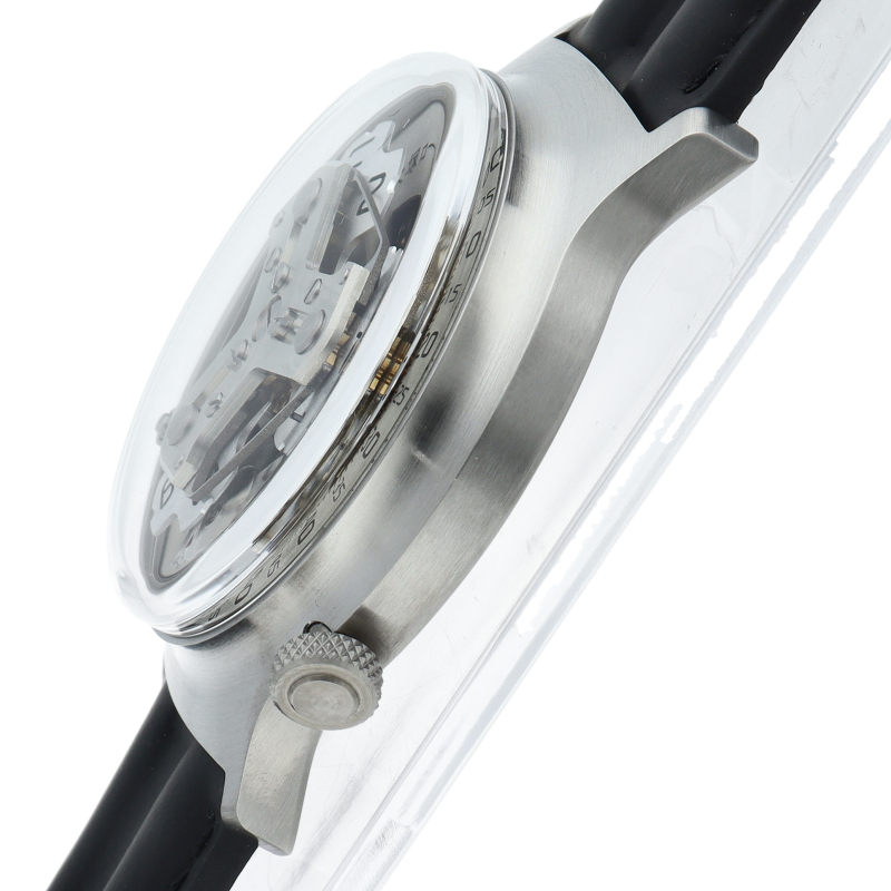大塚ローテックの中でも新作である「5号改」。衛星のように動く数字盤と、固定された目盛りが組み合わさって時間を刻むサテライトアワーウォッチ。自社製モジュールをMIYOTA製ムーブメントの上に搭載。8時位置のボールベアリングローラーに直接当たることで、ジャンピングアワーのように瞬時に切り替わり、その時ディスクが時計右側の分メモリを指すことによって時間を読み取る。5時位置のディスクは秒ディスクになります。
