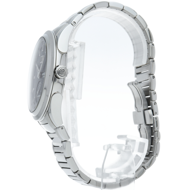 「神の手を持つ時計師」と呼ばれたミシェル・パルミジャーニが1996年にスイスのフルリエに創業したマニュファクチュールブランドであるパルミジャーニ・フルリエの【トンダ GT】。ビッグデイトとスモールセコンドを備えたモデルで、伝統的な「クル・トリアンギュレール」ギョーシェ彫りを施し、ベゼルにも細かい溝を全体に切り込むことでラグジュアリー感を演出しています。