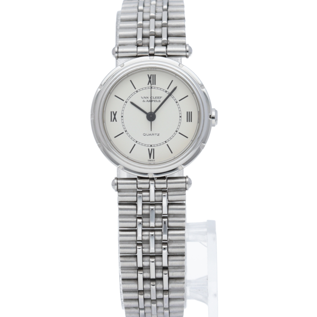 人気宝飾ブランド「ヴァンクリーフ&アーペル」の上品かつ高級感溢れるクラシックウォッチ。シンプルなデザインにラウンド型ケースがマッチしたオススメの1本。