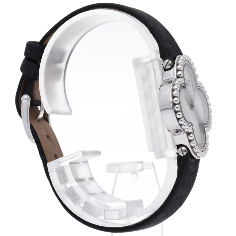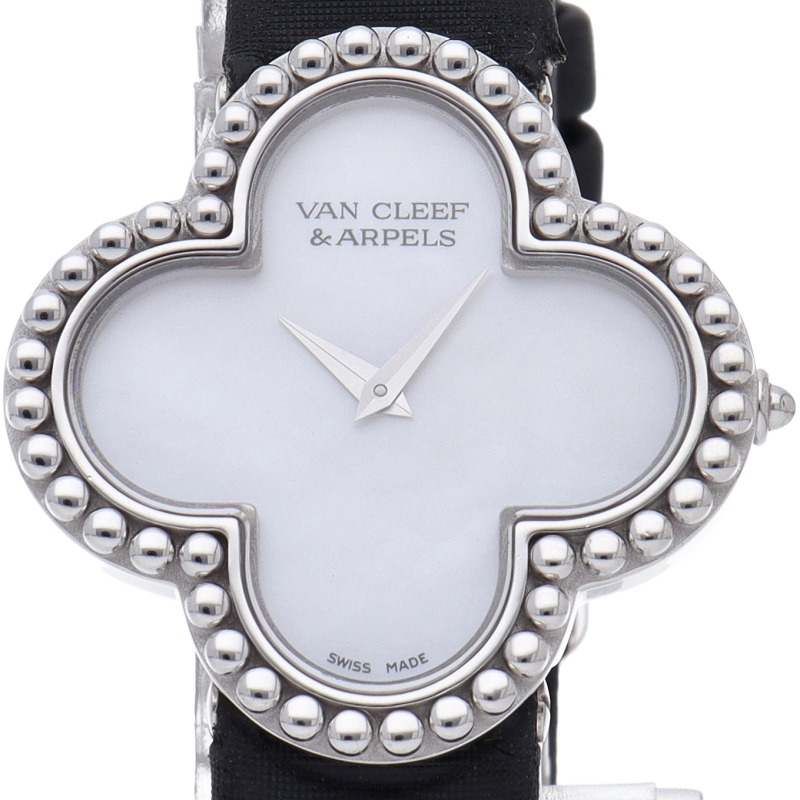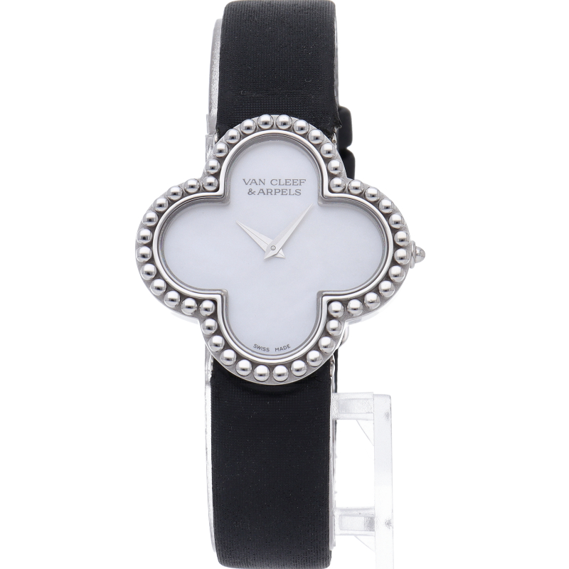 人気宝飾ブランド「ヴァンクリーフ&アーペル」の代名詞アルハンブラのクローバーブレスレット時計です。時計の機能と優美なブレスレットを兼ね備えたブレスウォッチです。上品で繊細な作りが大変素敵です。