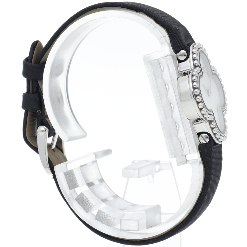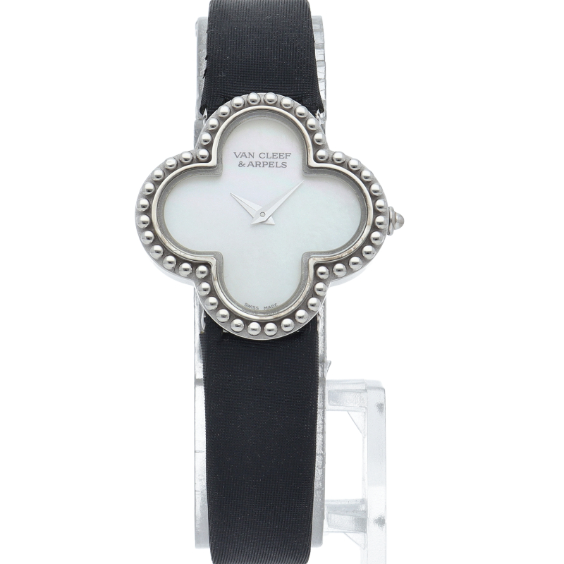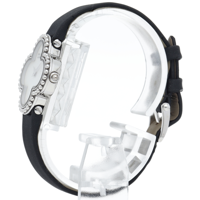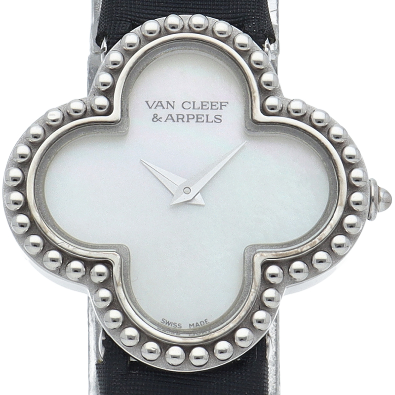 人気宝飾ブランド「ヴァンクリーフ&アーペル」の代名詞アルハンブラのクローバーブレスレット時計です。時計の機能と優美なブレスレットを兼ね備えたブレスウォッチです。上品で繊細な作りが大変素敵です。