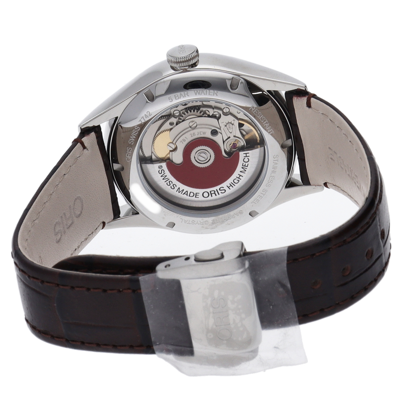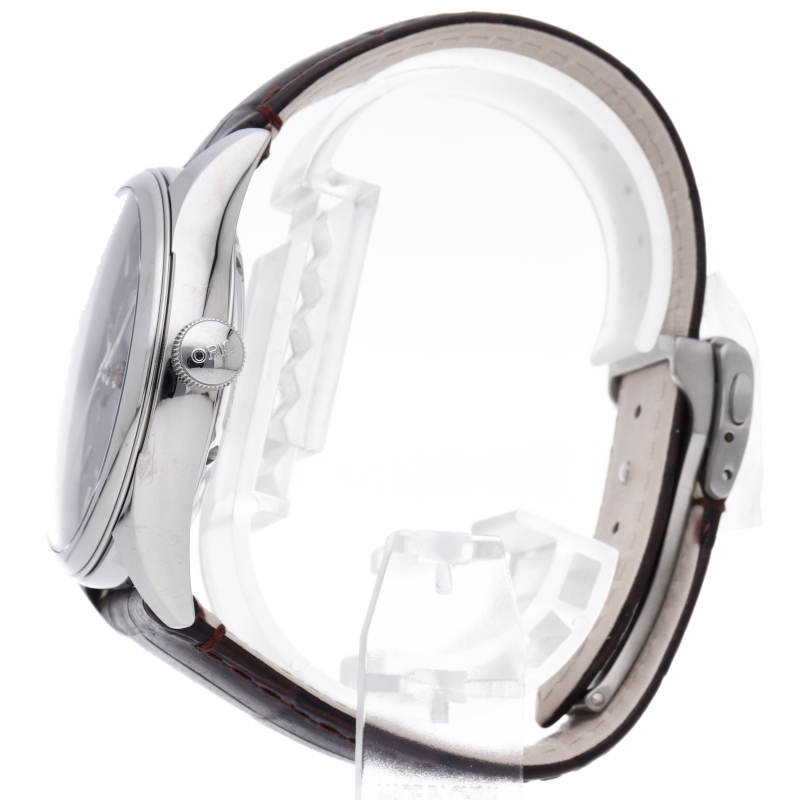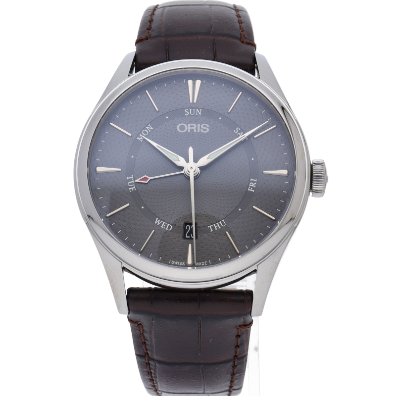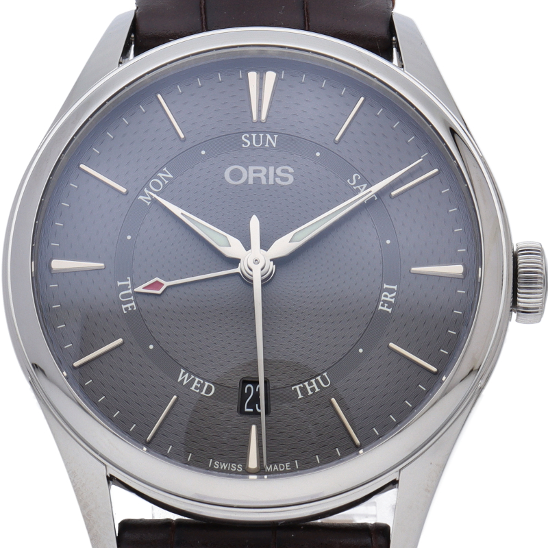 シンプルで余分な装飾が一切ない時計だからこそ、キレイで美しく手元が映える、スイス製ブランドウォッチ「オリス アートリエ ポインターデイ デイト」。赤い先端の針で文字盤にある曜日を示し、6時方向には日付表示窓。働く男性の腕元にエレガントで美しいオリス アートリエウォッチです。