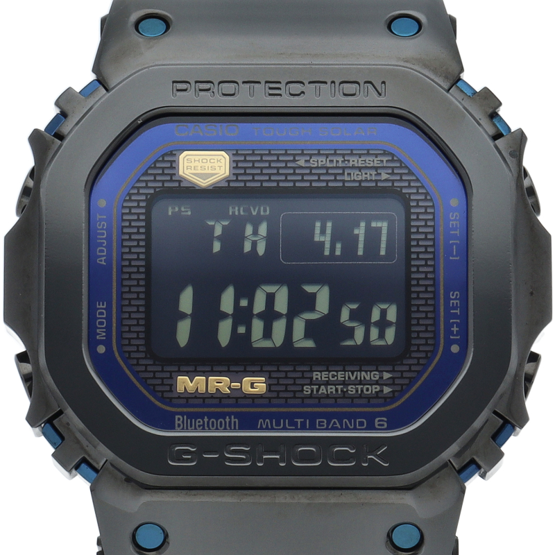 G-SHOCKの最上級ラインである「MR-G」シリーズ。MRG-B5000は、G-SHOCKの初代モデルDW-5000Cをこだわりの金属素材と丹念な仕上げにより、MR-Gとしてつくり上げたモデルです。