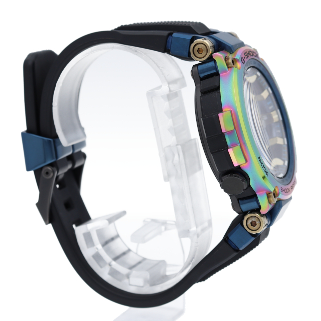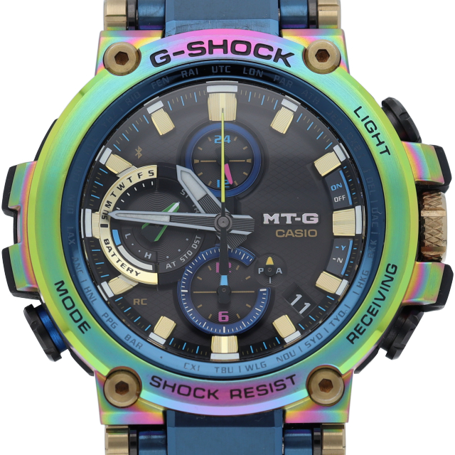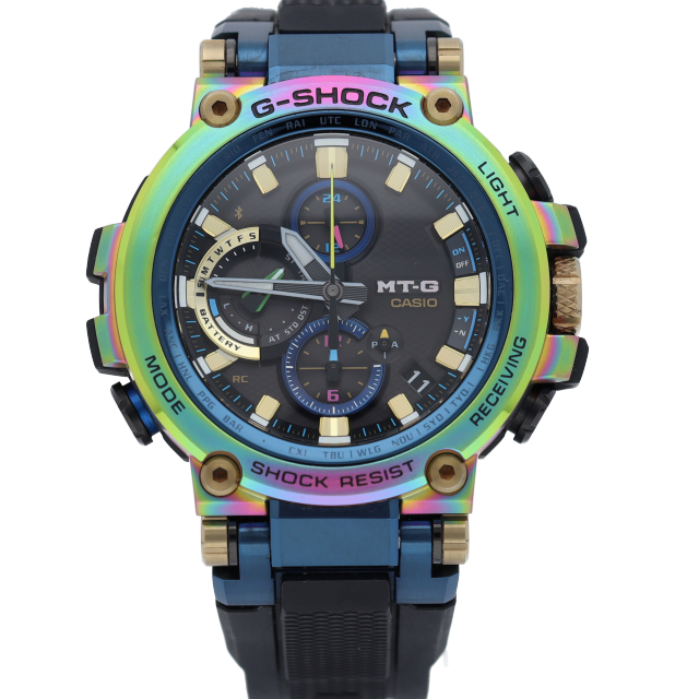 こちらのモデルは、1999年に誕生したMT-Gシリーズの「生誕20周年」を記念した特別なカラーリングを採用。メタルベゼルにレインボーIPを施すことで、生誕から2019年現在まで、新たなデザインや素材の採用で存在感を放ってきたG-SHOCK、MT-Gシリーズならではの斬新な仕様となっています。