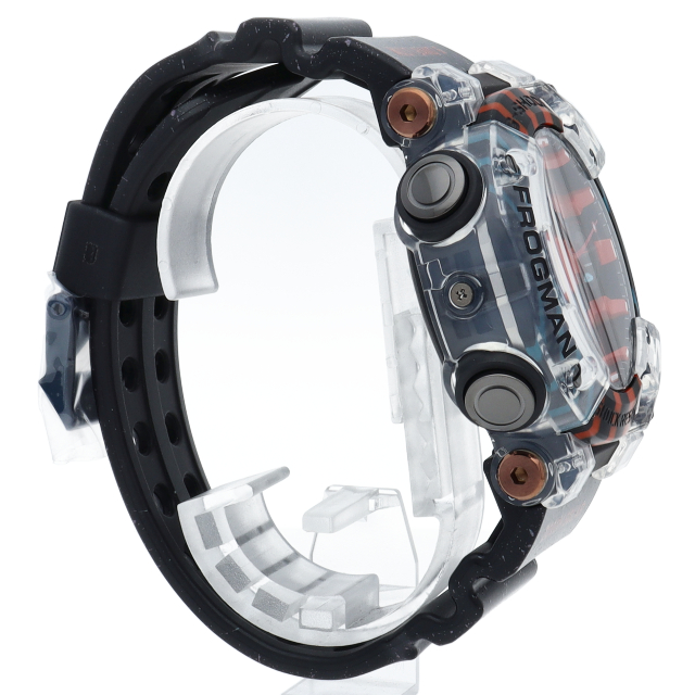 G-SHOCK MASTER OF Gの本格ダイバーズウオッチ「FROGMAN(フロッグマン)」誕生30周年を記念したスペシャルモデルです。南米のアマゾンに生息する希少なヤドクガエルをモチーフに、その神秘的な色彩を表現するためマルチカラーカーボンをベゼルに採用しました。