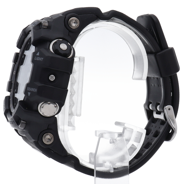 瓦礫や土砂が山積・散乱するような極限の陸上での使用を想定したG-SHOCK「マッドマスター」シリーズの、電波ソーラーモデルです。過酷な環境下での使用に応えるべく、ボタンには防塵・防泥性能を可能にするボタンガードシリンダー構造を採用しています。
