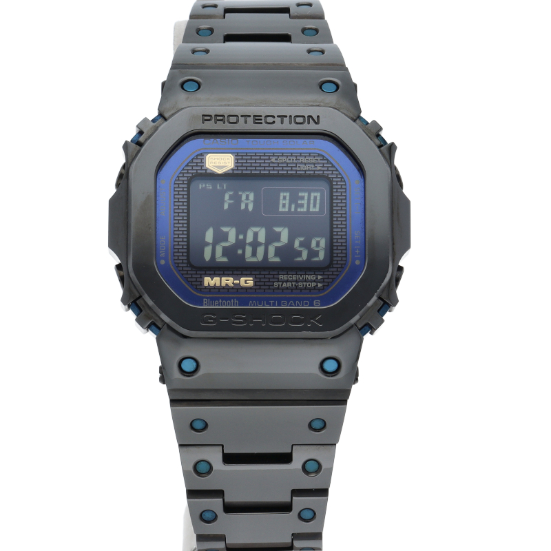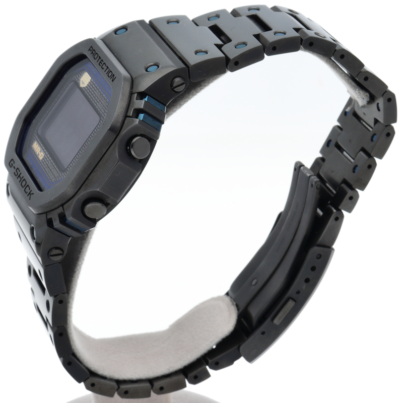 G-SHOCKの最上級ラインである「MR-G」シリーズ。MRG-B5000は、G-SHOCKの初代モデルDW-5000Cをこだわりの金属素材と丹念な仕上げにより、MR-Gとしてつくり上げたモデルです。