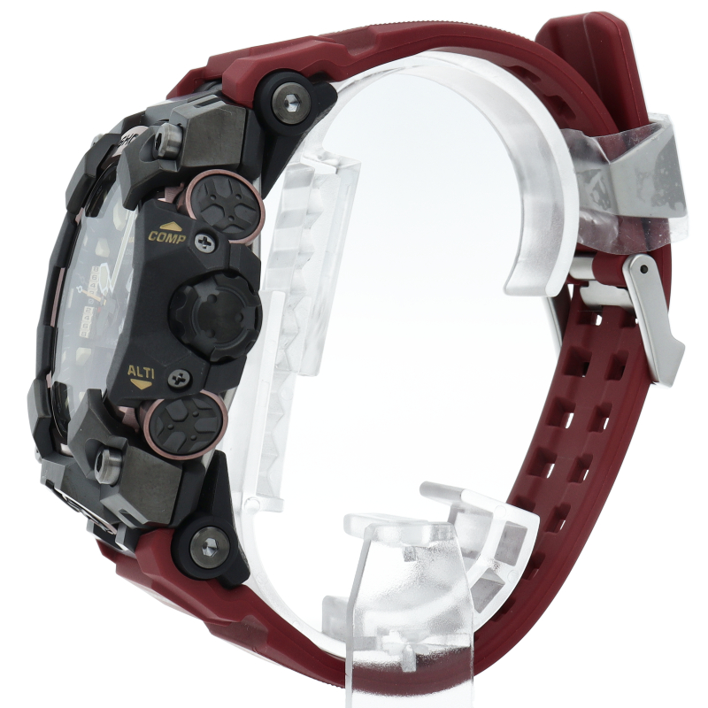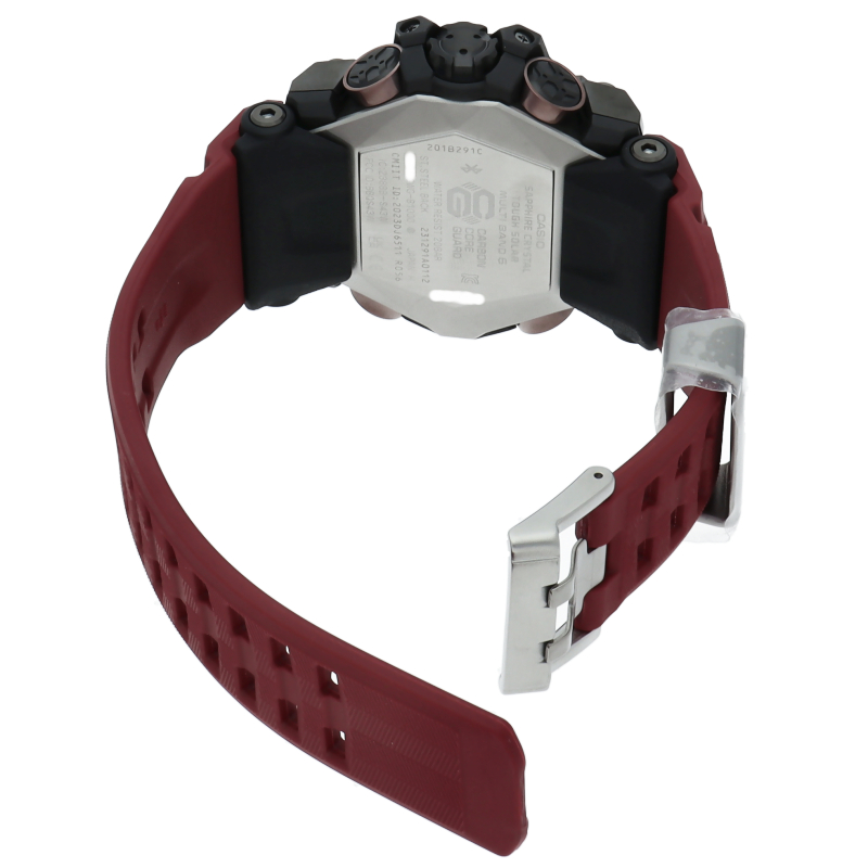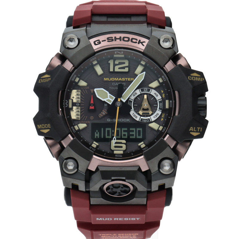 瓦礫や土砂が山積・散乱するような極限の陸上での使用を想定したG-SHOCK「マッドマスター」。カーボンファイバー強化樹脂ケース1と高精度の鍛造技術によるメタル素材を融合したモデルです。 機能面では電波ソーラーに加えてトリプルセンサーを搭載し、方位、気圧・高度、温度情報を取得可能。ダブルLEDライト、サファイアガラス等により高い視認性と時刻判読性を確保しています。