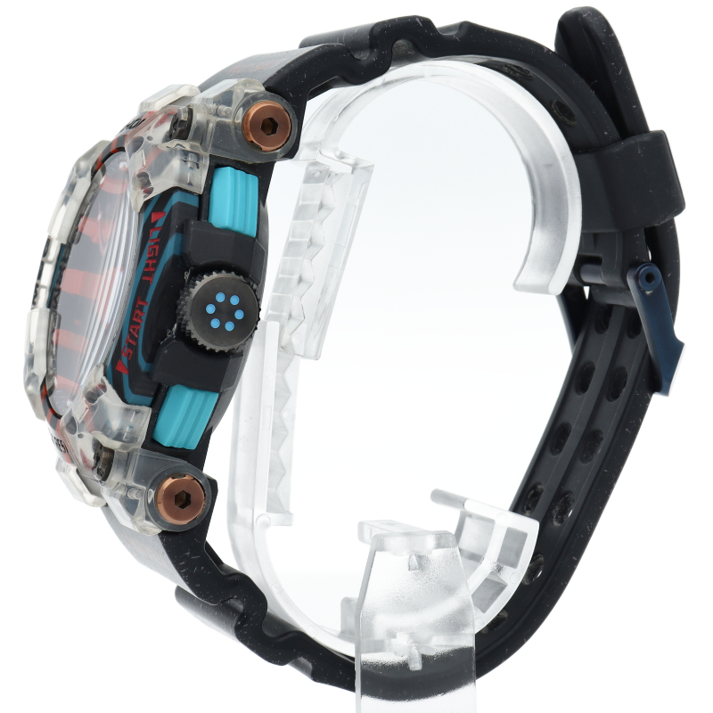 G-SHOCK MASTER OF Gの本格ダイバーズウオッチ「FROGMAN(フロッグマン)」誕生30周年を記念したスペシャルモデルです。南米のアマゾンに生息する希少なヤドクガエルをモチーフに、その神秘的な色彩を表現するためマルチカラーカーボンをベゼルに採用しました。