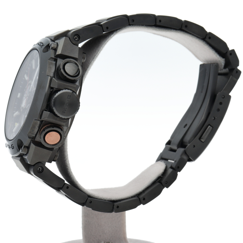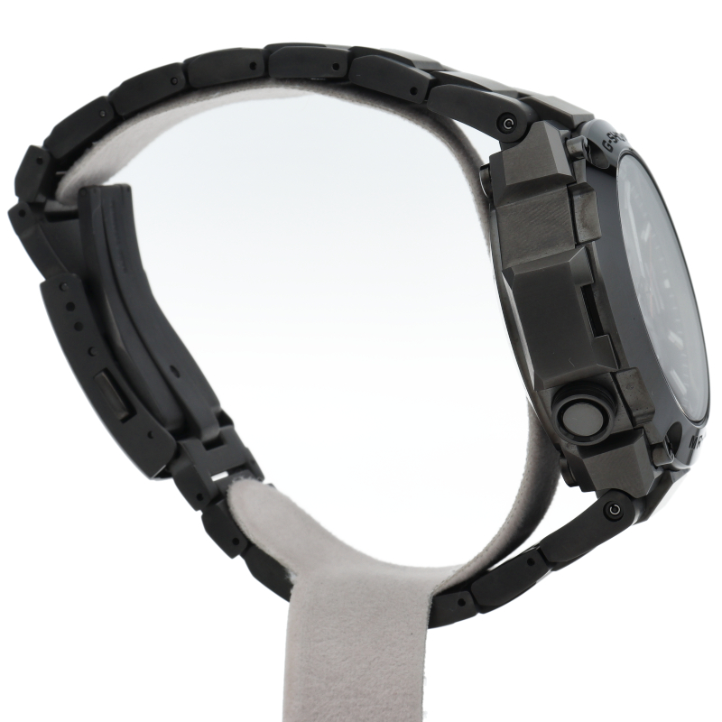 MR-Gから「黒備え」をテーマにしたモデルが登場。日本伝統のタフネス観を表現するために、日本生まれの新合金「コバリオン」を採用。ステンレスの2倍以上の硬度とプラチナと同等の輝きを持つといわれる素材を、高度な切削・研磨技術を駆使して、今までにない強さと美しさを持つベゼルに仕上げました。標準電波、GPS衛星電波、Bluetoothによる時刻修正システムを搭載し、時刻表示の精度も追求しました。