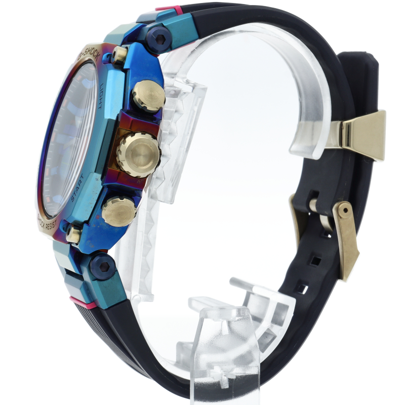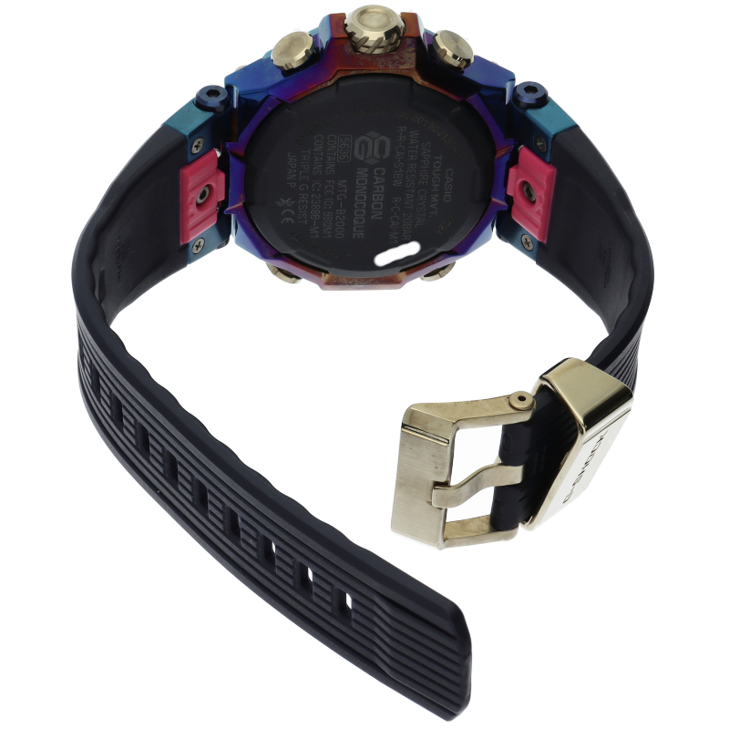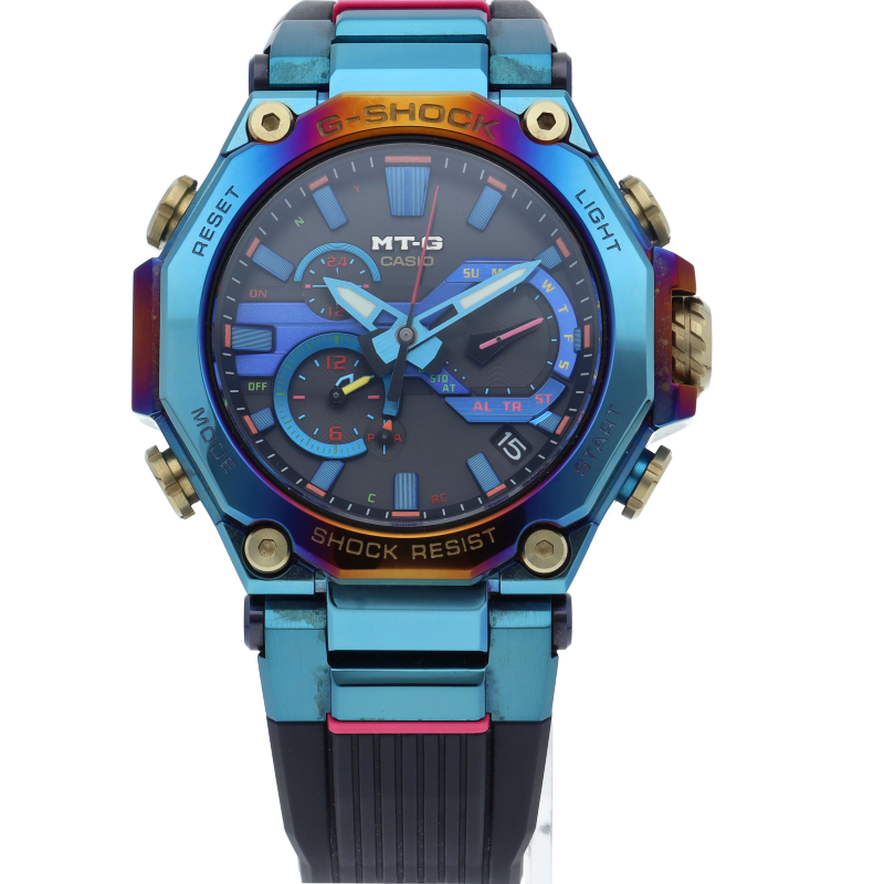 カーボン素材を活用したMTG-B2000をベースにし、「ブルーフェニックス」をテーマにデザインされたスペシャルモデルです。 「ブルーフェニックス」は現れると「よいことが起きる前触れ」とも言われる伝説の鳥「鳳凰」の欧米での呼び名です。ベゼルとケースの両方にレインボーIPを施し、インパクトあるデザインに仕上げています。