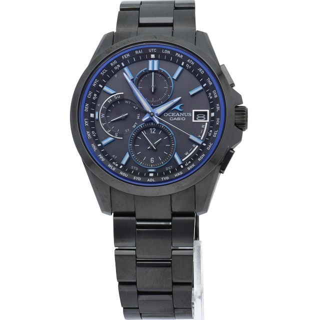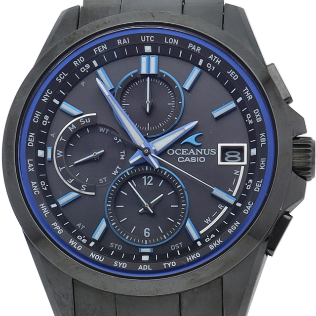 カシオで人気のソーラー電波時計「オシアナス」。世界6局の電波での自動時刻調整にワールドタイム・クロノグラフ機能・デイト表示等と搭載した多機能ウォッチ。