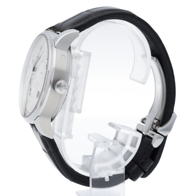 高級感溢れる外観に、ダブルスワンネック緩急針を搭載した美しい自社製キャリバーを堪能できるモデルです。ビックデイト表示、ムーンフェイズなど機能面も充実しています。シースルーバックからはアシンメトリーな構造を持つCal.90-02を眺めることができます。