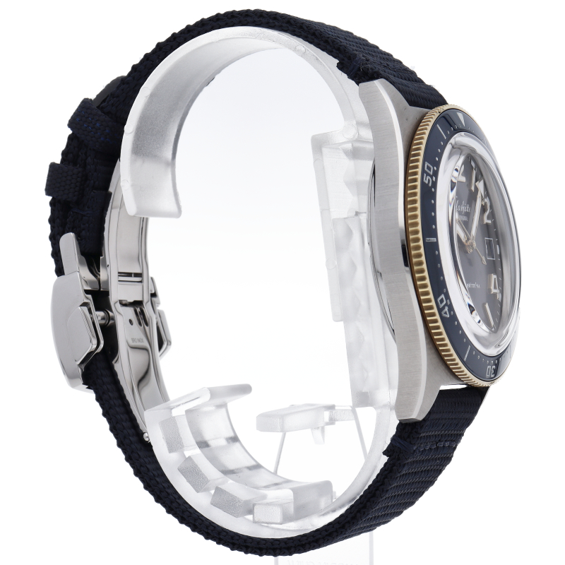 ケースサイズは39.5mmと現代のスポーツモデルとしては少し小振りなサイズで「SPEZIMATIC」を意識したものとなっています。ベゼルプレートには耐傷性に優れたセラミックを採用し、防水性能は20気圧防水を確保します。ベゼルにSS/YGを採用したコンビモデル。