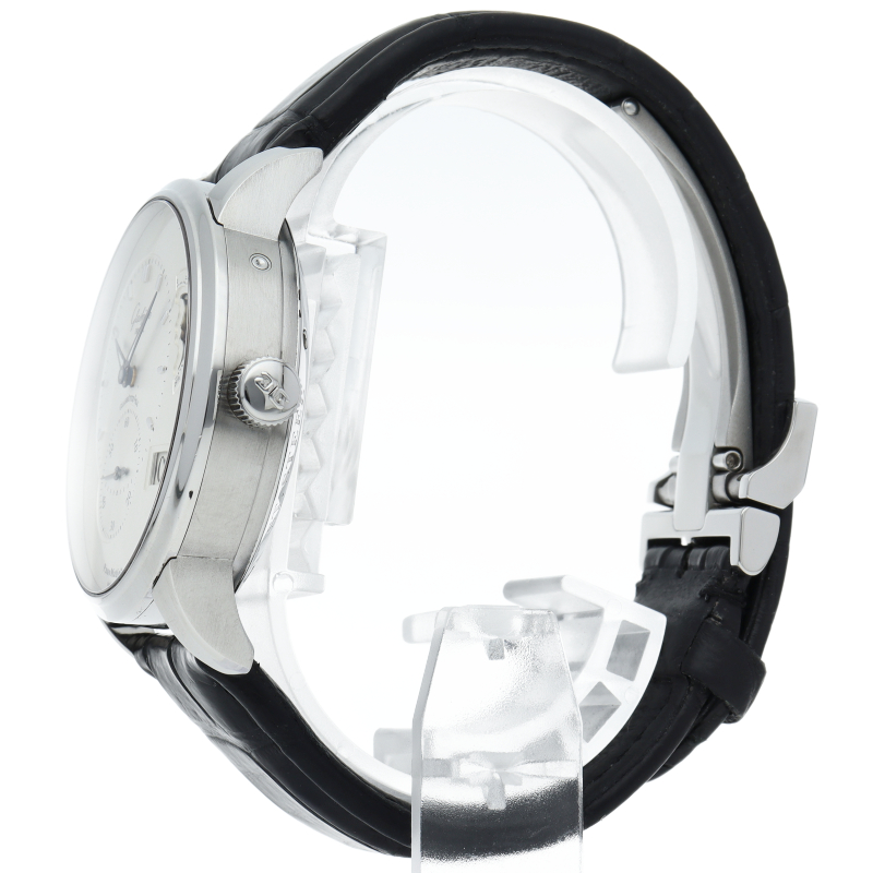 高級感溢れる外観に、ダブルスワンネック緩急針を搭載した美しい自社製キャリバーを堪能できるモデルです。ビックデイト表示、ムーンフェイズなど機能面も充実しています。シースルーバックからはアシンメトリーな構造を持つCal.90-02を眺めることができます。