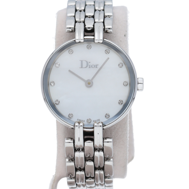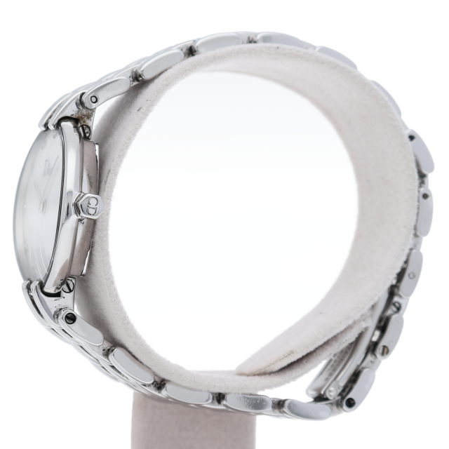 ディオールの定番レディースウォッチ「バギラ」。文字盤には、ブランド名と長針、短針のみの飾り過ぎず無駄のないお洒落な一本です。