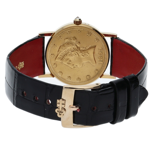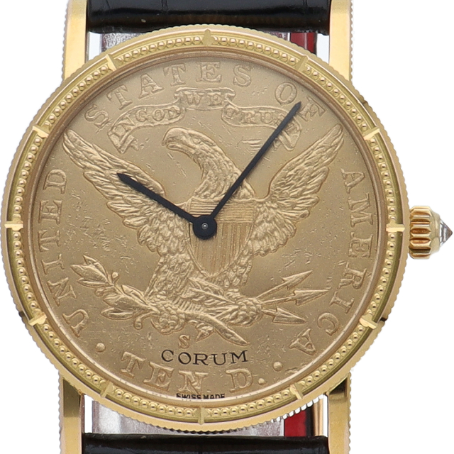 非常に珍しいコルムコインウォッチです。10$金貨ベースに作られているコルム定番の時計。金貨を時計にと思い切った発想が素晴らしいです。