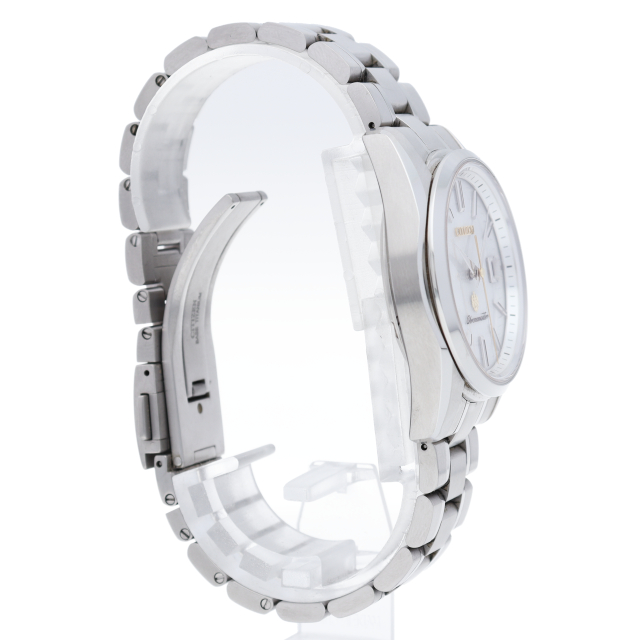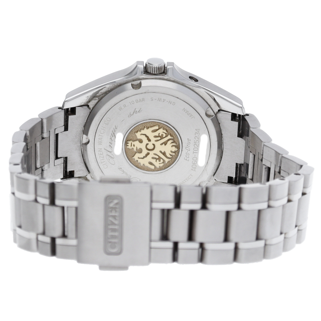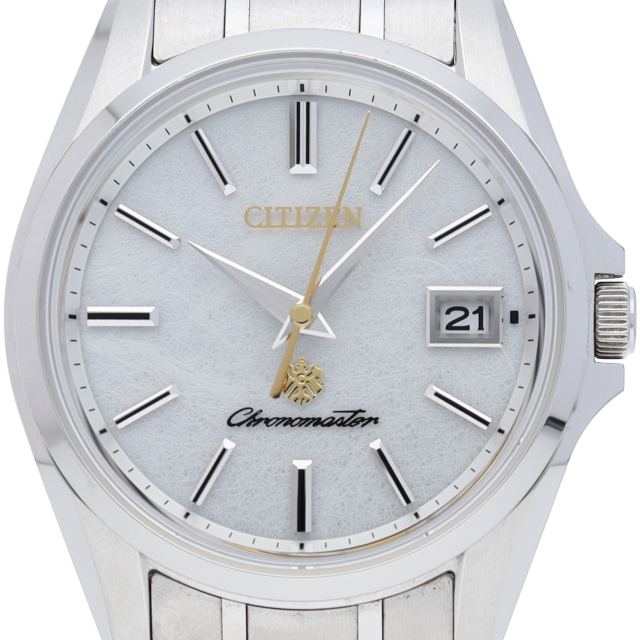 シチズンで人気の電波時計シリーズ「エコドライブ」。こちらは日本三大和紙の一つ、土佐和紙の「雲龍紙」を採用したダイヤルとスーパーチタニウムにデュラテクトプラチナを施したケースを合わせています。電池交換が不要の光発電「エコ・ドライブ」で「年差±5秒」の精度を誇り、ダイヤルには「シチズン クロノマスター」のシンボルであるイーグルマークをあしらっています。限定300本のリミテッドモデルです。AQ4021-51W(A060-T02