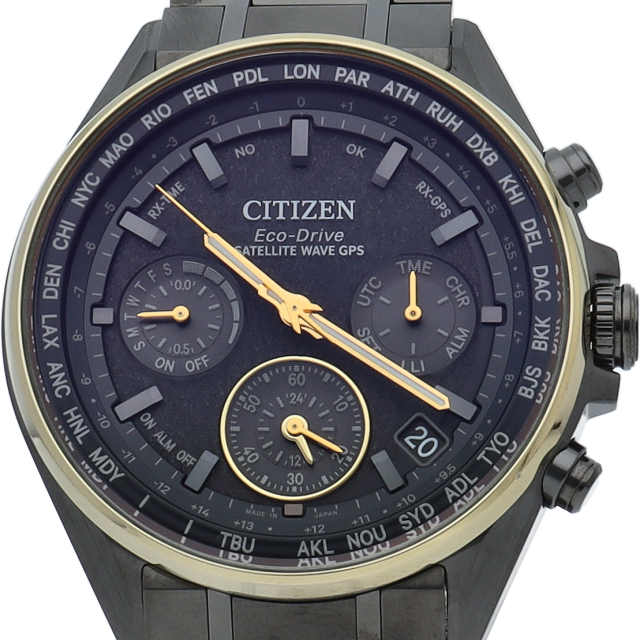 シチズンで人気の電波時計シリーズ「エコドライブ」。世界4局の電波での自動時刻調整にワールドタイム・クロノグラフ機能・デイト表示等と搭載した多機能ウォッチ。こちらは創業100周年を記念した限定コレクションモデルです。