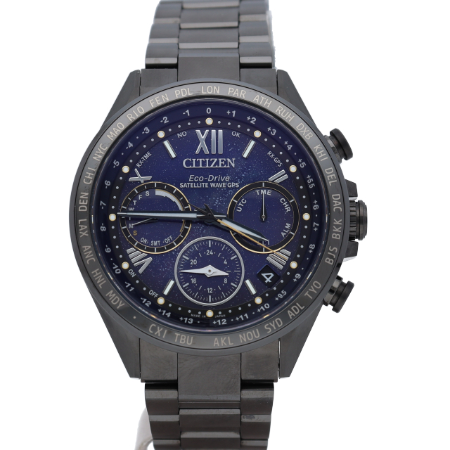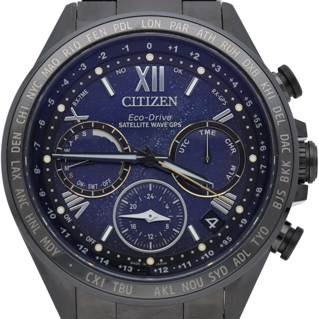 シチズンで人気の電波時計シリーズ「エコドライブ」。世界4局の電波での自動時刻調整にワールドタイム・クロノグラフ機能・デイト表示等と搭載した多機能ウォッチ。こちらは創業100周年を記念した限定コレクションモデルです。