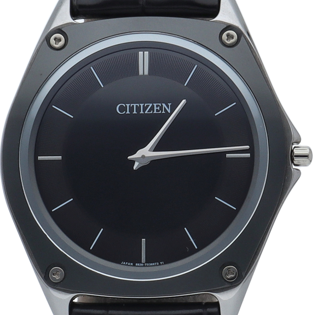 エコ・ドライブ ワンに薄さ、美しさを極めるための、シチズンがこだわりぬいた究極の黒が登場。新しい硬質素材「アルティック」をベゼルに時計素材として初採用。ベゼルのアルティックのダークグレー、ケースのシルバーカラーの組み合わせでモノトーンでまとめ、繊細でシャープな印象に仕上げています。