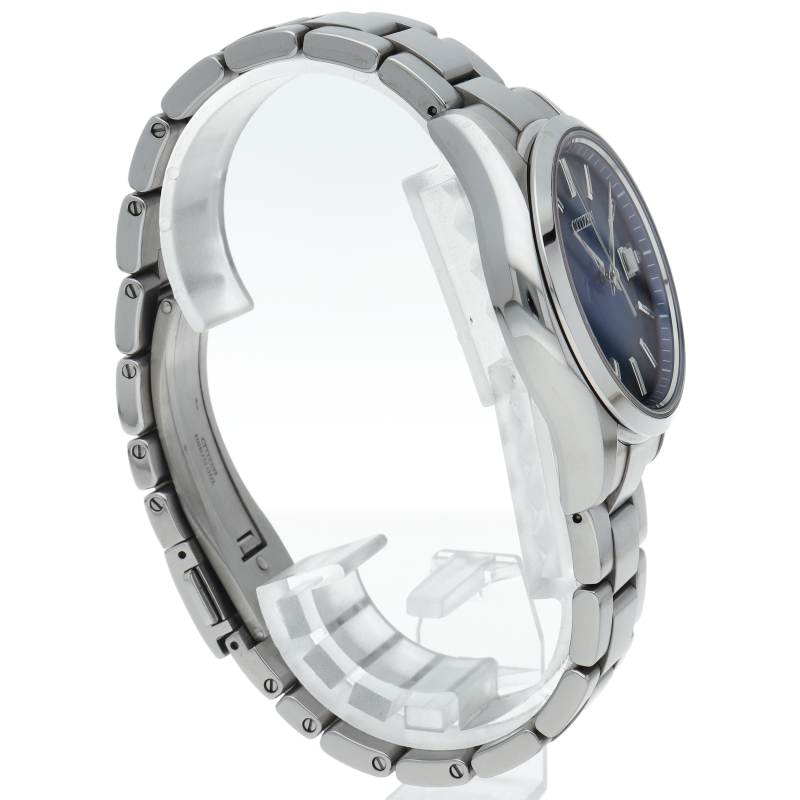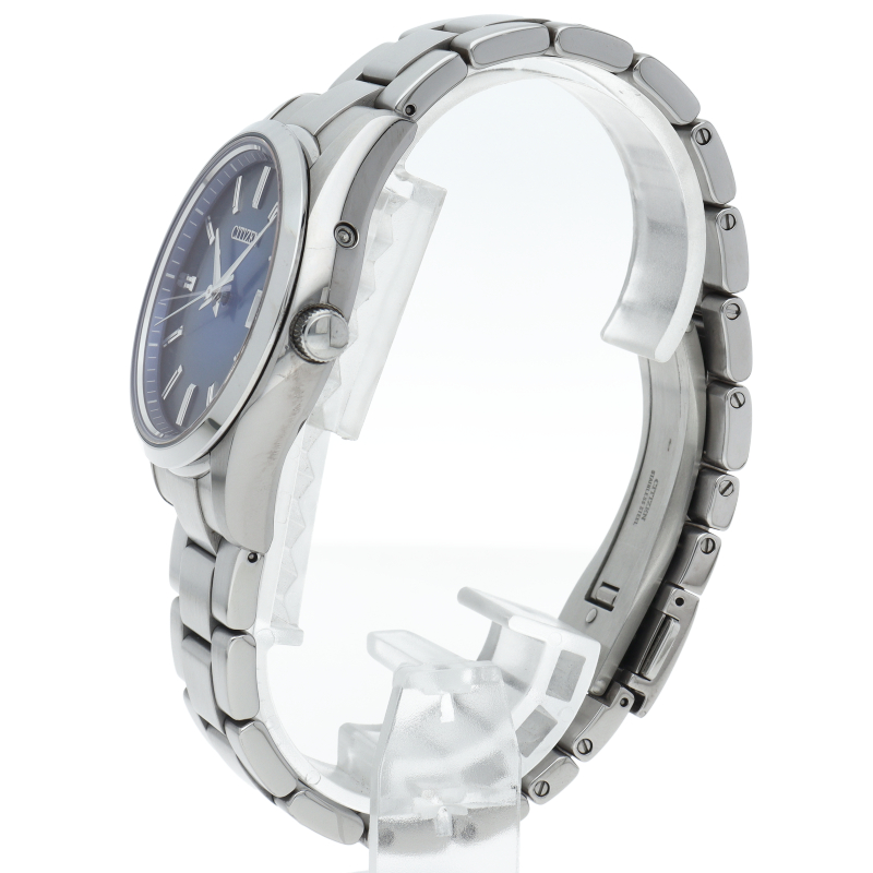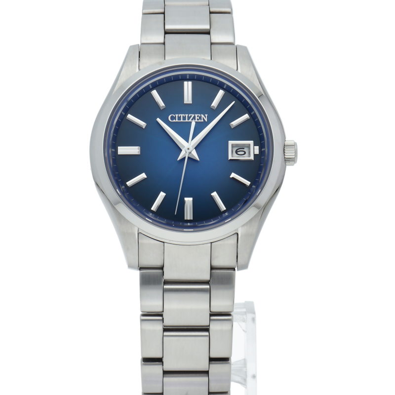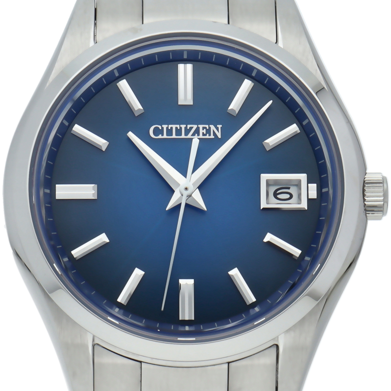 シチズンが磨いてきた技術を結集した「THE CITIZEN」。1年365日をわずか5秒以内の誤差で刻みつづける、年差±5秒の「エコ・ドライブ」を搭載しております。シンプルなデザインを追求し、サイドの曲面は流れるような美しいラインに仕上げられ、スタンダードなモデルでありながら、かけ心地も良くステンレスならではの上品な質感に満ちた一本です。