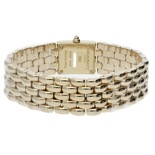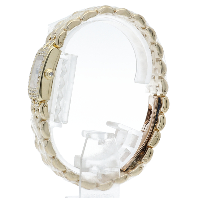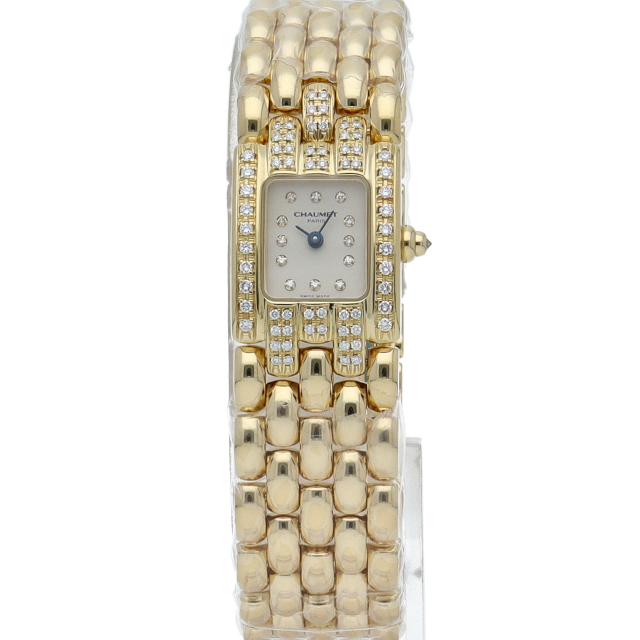 宝飾ブランド「ショーメ」のジュエリーウォッチです。クラシカルなデザインながらベゼルのダイヤが豪華さを上品に演出しています。