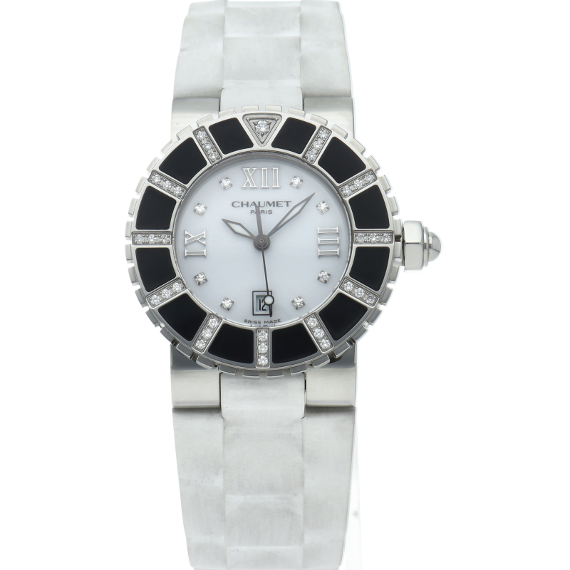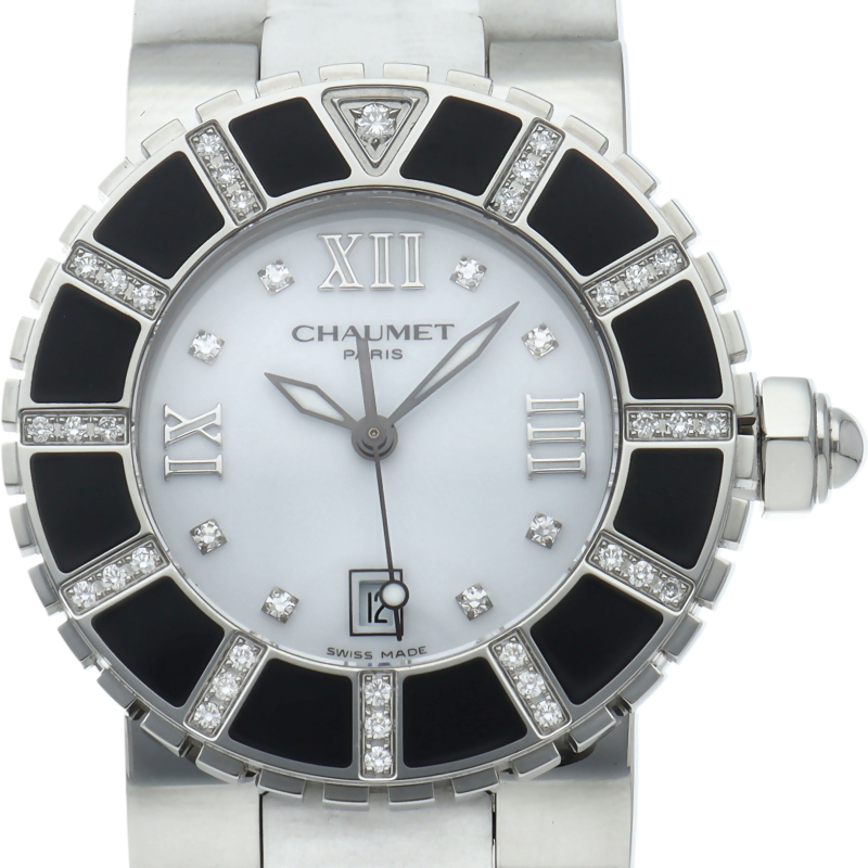 シェル独特の光沢が時計の表情に変化を与える「クラスワン」。回転するベゼルに上質なダイヤが配された、ジュエリーウォッチです。