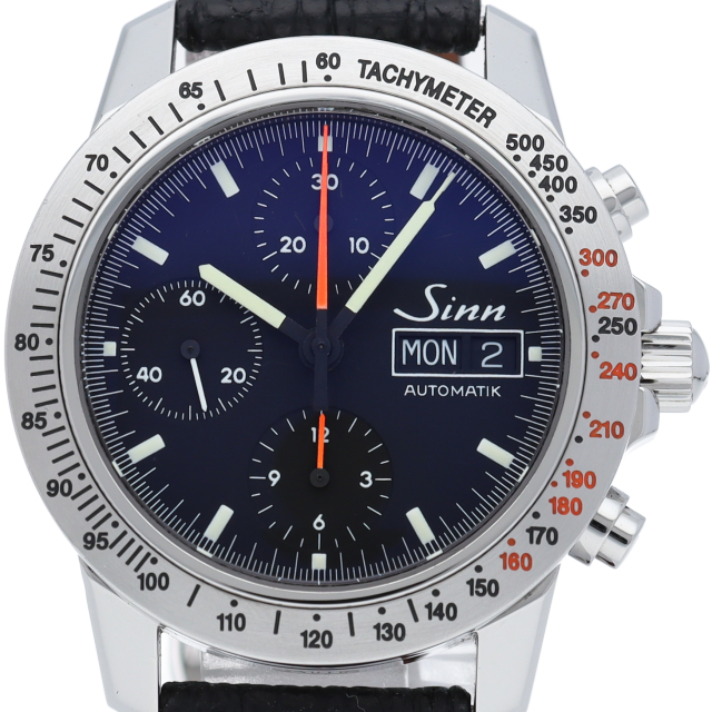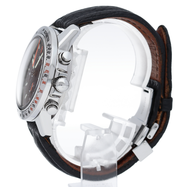 60km/hから500km/hまでのスピードが表示されたベゼルのタキメーターにタイヤの制限速度規格に対応したスピード数値が赤く塗られた、ドイツの時速無制限高速道路の名を冠した「303 アウトバーン」。