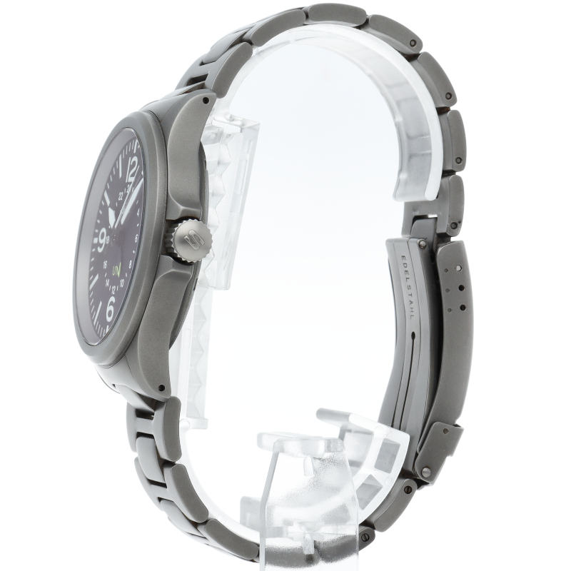 856.010は、プロフェッショナルパイロットのために設計された、堅牢で機能的な腕時計です。マットブラックの文字盤に、高い視認性を誇るインデックスと針を備え、どのような状況下でも時刻を正確に読み取ることができます。UTC機能により、第二時間帯を表示することができ、海外渡航の際にも便利です。