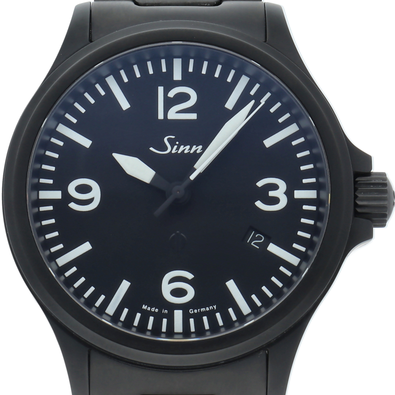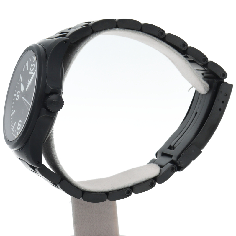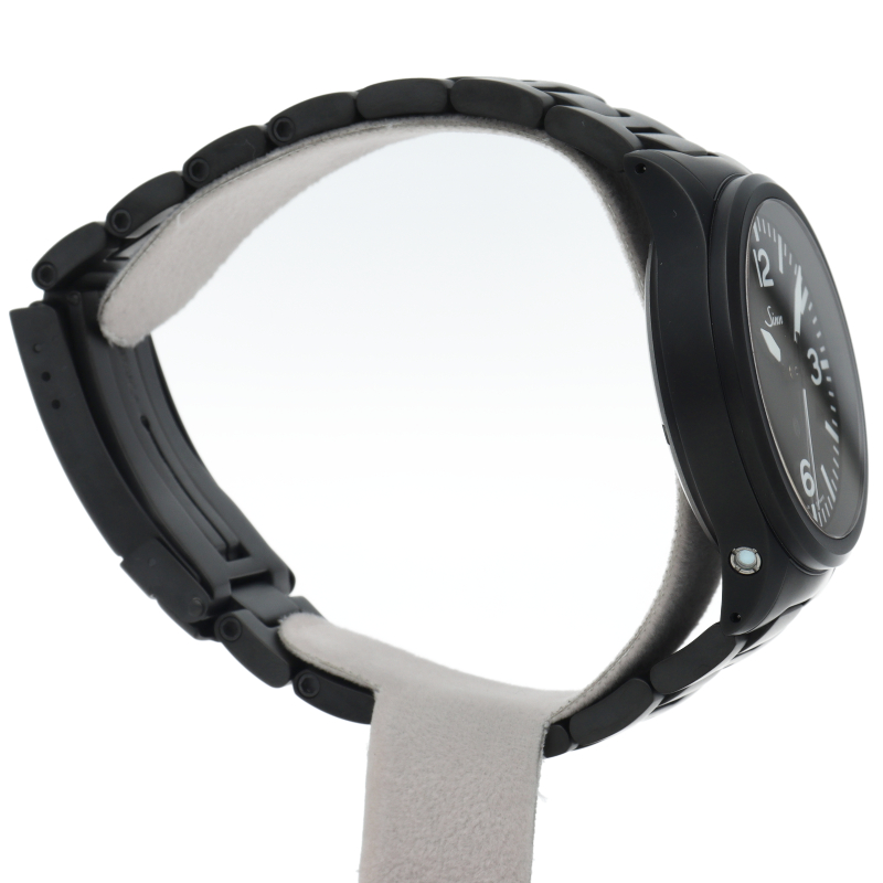 856.B.Sは、UTC(デュアルタイム)機能付きの856のUTC機能を廃した刻時に特化した新作856.BにDLCコーティングを施したモデルです。パイロットにとって最も重要な極限状態での視認性を確保するため、3・6・9・12のインデックスを強調したダイヤルデザインと、DLCコーティングでよりコックピットのイメージに近くなり、先鋭的で力強いイメージに、さらに精悍で重厚なイメージが加わりました。