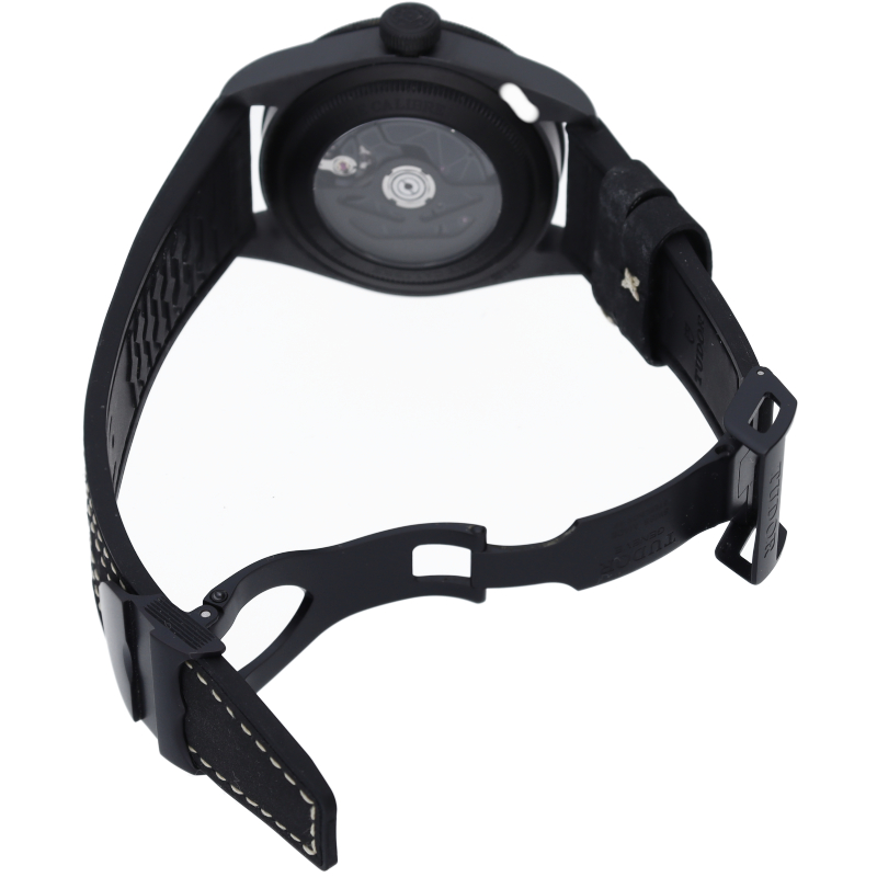 チューダーといえばブラックベイ。79210CNUは同シリーズの新たなる定番として製造された次世代モデルです。ケースにはブラックセラミックが採用され、ベルトも文字盤も合わせてオールブラック仕様となっております。時針にはチューダーの特徴とも言えるスノーフレーク針(イカ針)。ムーブメントには2021年、当新作で初搭載となる「MT5602-1U」が採用されました。
