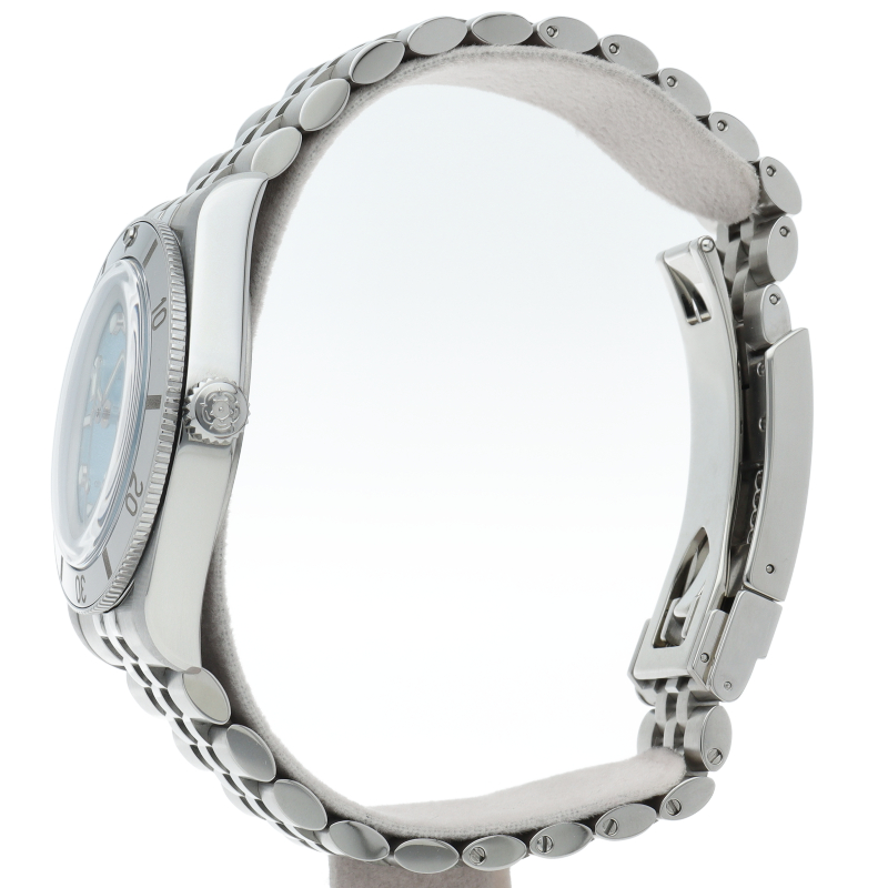 ブラックベイ 54 “ラグーンブルー”は、蒼く澄んだ波と真っ白な砂浜に陽光が降りそそぐ、どこか暖かい場所を思い起こさせる。37mmのケース、サンドテクスチャーの「ラグーンブルー」ダイアル、そしてミラーポリッシュ仕上げのベゼル。さらに、心地良く手首に馴染む5列リンクのブレスレットが、着用者を南国の浜辺へと誘う。最先端のマニュファクチュールキャリバーMT5400。