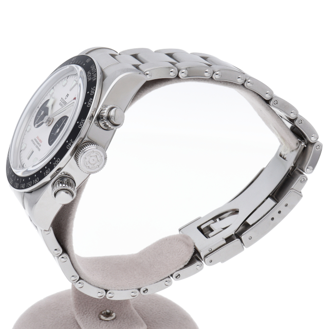 チューダーの初期のサブマリーナに使用されていた通称“イカ針”を採用した「ブラックベイ」。2021年新作。70時間パワーリザーブの自社製ムーブメント「MT5813」搭載。チュードル。