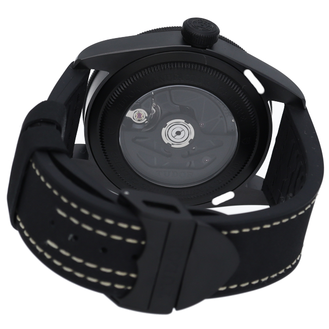 チューダーといえばブラックベイ。79210CNUは同シリーズの新たなる定番として製造された次世代モデルです。ケースにはブラックセラミックが採用され、ベルトも文字盤も合わせてオールブラック仕様となっております。時針にはチューダーの特徴とも言えるスノーフレーク針(イカ針)。ムーブメントには2021年、当新作で初搭載となる「MT5602-1U」が採用されました。