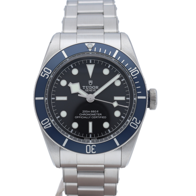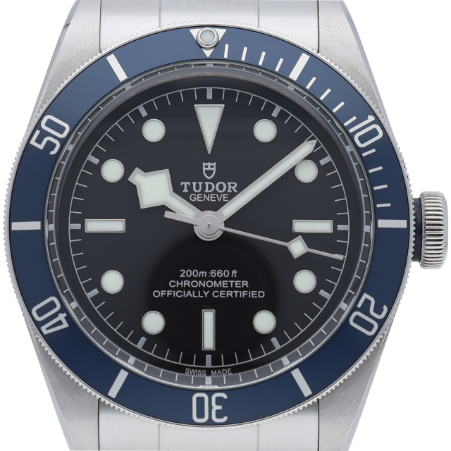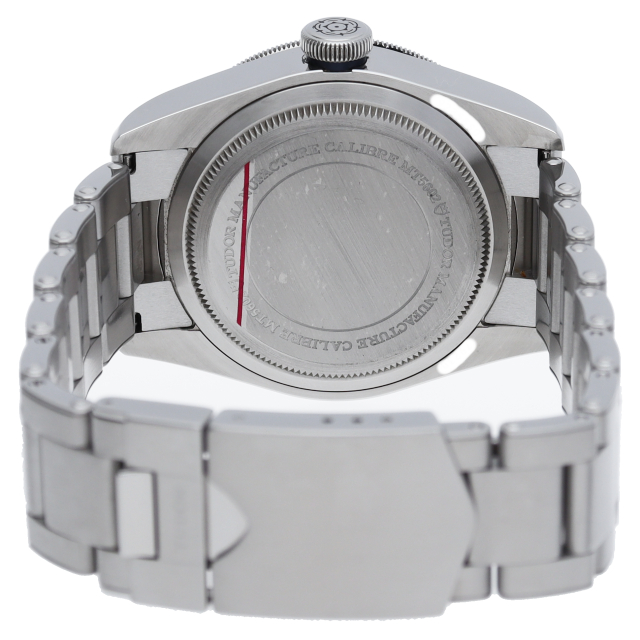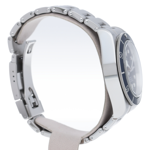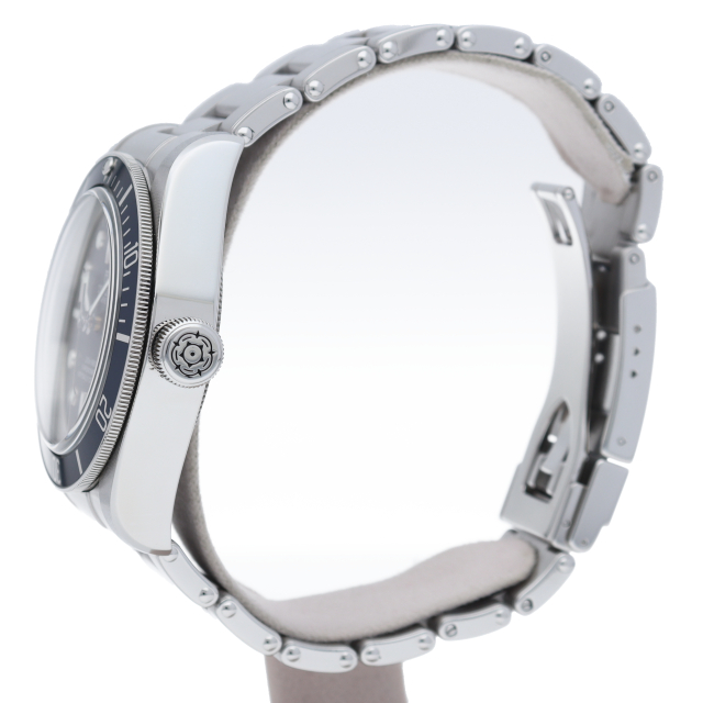 チューダーの初期のサブマリーナに使用されていた通称“イカ針”を採用した「ブラックベイ」2016年発表のニューモデルです。ダイヤルには現行タイプの「盾」マークがプリントされていますが、リューズトップにはヴィンテージ感の漂う「バラ」マークを刻印。ムーブメントにはCOSC公認のクロノメーターを取得した70時間パワーリザーブの自社製キャリバー「MT5602」を搭載。
