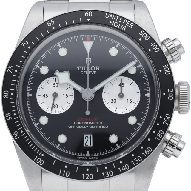 チューダーの初期のサブマリーナに使用されていた通称“イカ針”を採用した「ブラックベイ」。2021年新作。70時間パワーリザーブの自社製ムーブメント「MT5813」搭載。チュードル。