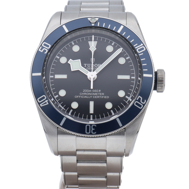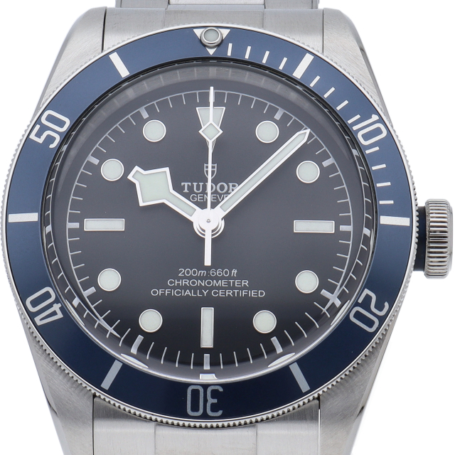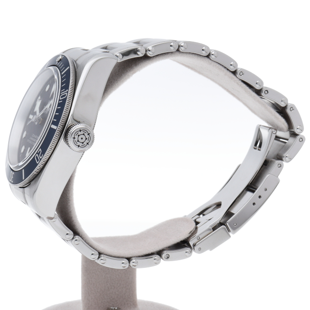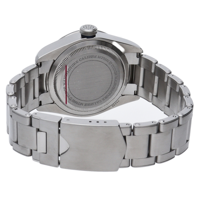 チューダーの初期のサブマリーナに使用されていた通称“イカ針”を採用した「ブラックベイ」2016年発表のニューモデルです。ダイヤルには現行タイプの「盾」マークがプリントされていますが、リューズトップにはヴィンテージ感の漂う「バラ」マークを刻印。ムーブメントにはCOSC公認のクロノメーターを取得した70時間パワーリザーブの自社製キャリバー「MT5602」を搭載。