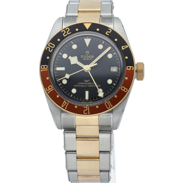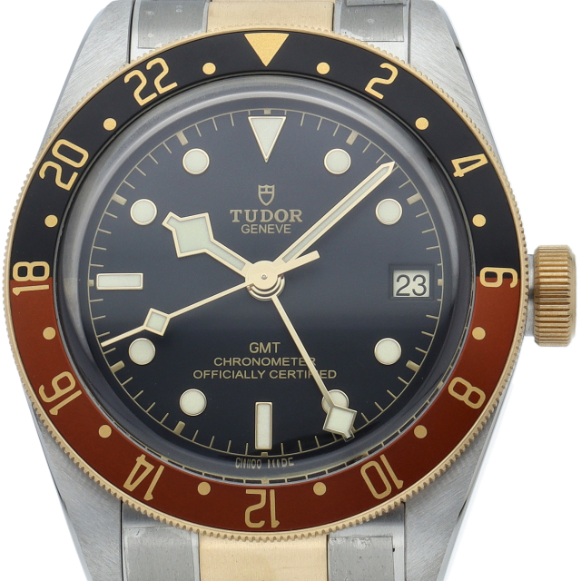 2022年の新作となる「ブラック/ブラウン」ベゼルを装備した「ヘリテージブラックベイ」。チュードルを代表するスポーツモデル「ブラックベイ」のGMT搭載モデル。搭載されている自社製ムーブメント「MT5652」は、70時間のパワーリザーブとクロノメーター認定を受けた高精度を誇り、実用性にも優れた1本となっています。